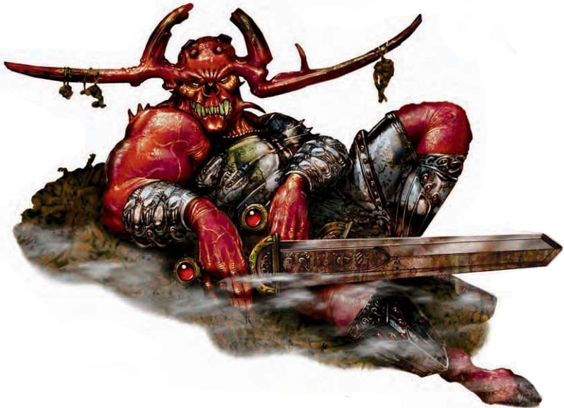 这个魁梧的生物拥有着巨人般的体型,它以切碎为乐,鹿角似的巨角上吊挂着干掉的尸体与头骨。这个生物穿着着造型复杂的铠甲,颜色发暗,布满凹痕的护甲复盖住了整个腿部直至蹄足。它那多指的手中握着一把宽阔的长剑。