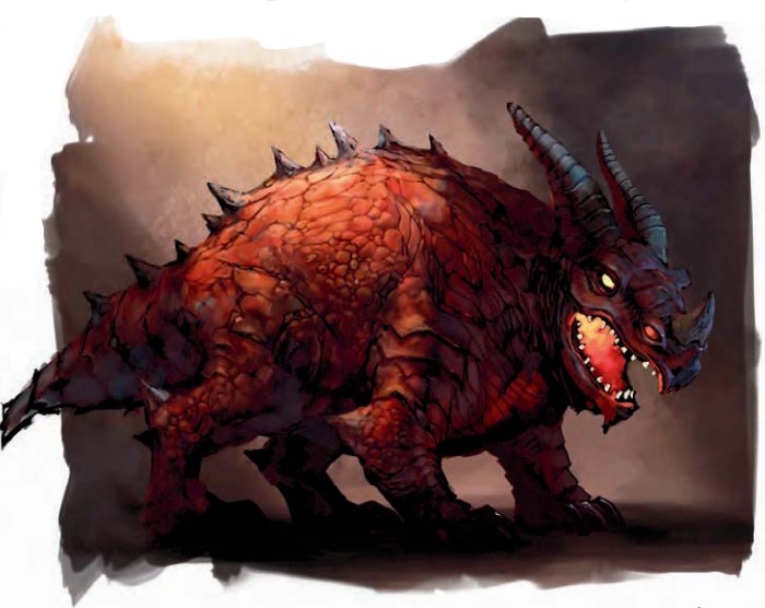 这头火红鳞片的类龙生物以惊人的速度向你冲来。同时牠还张开牠那令人生畏的下颌咆哮着,你能看见火焰在里面闪耀。