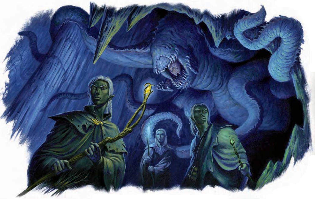 作为盘踞于地底国度的恐怖异怪,潜猎兽通过追踪魔法能量进行狩猎。它们可以“看到”魔法,但实际上却是瞎的。在它们有力的抓握下没有任何魔法效果能够幸存,这使得这些掠食者们对于依赖法术或魔法物品的冒险者而言尤为致命。