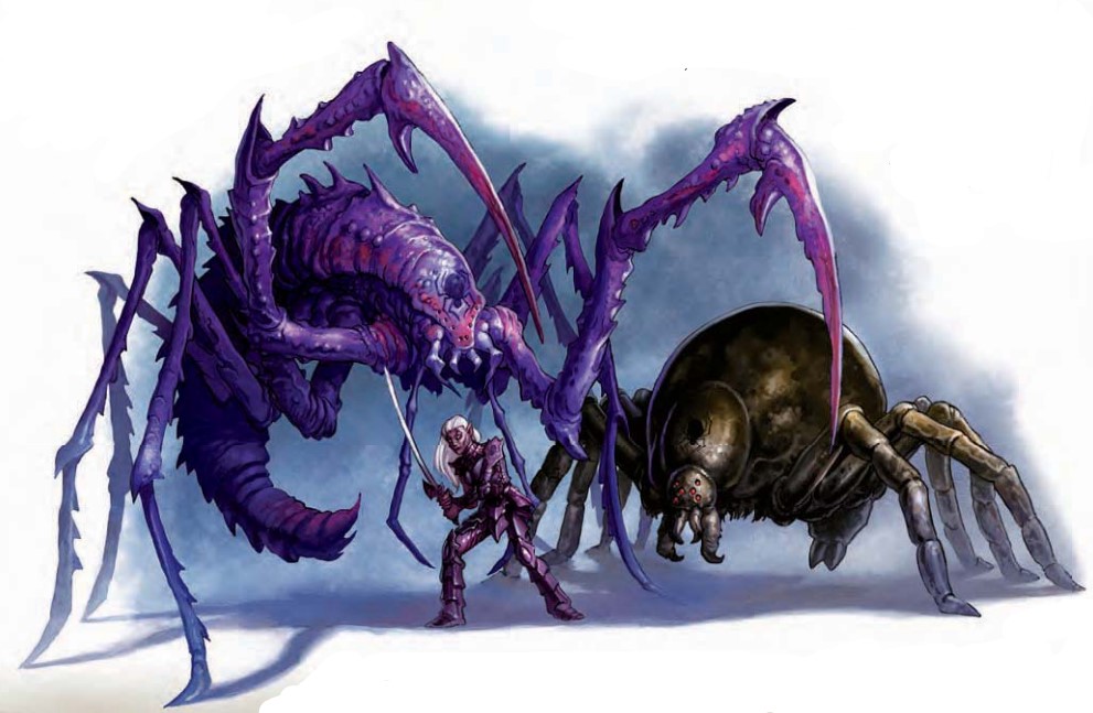 这个优雅的类人生物有着墨色的皮肤和白色的头发。她看起来比同类要强壮,而她那朦胧的盔甲上有一个蜘蛛徽章。