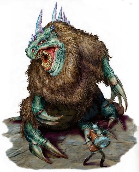 这是加恩格拉斯巨兽,来自风啸深渊喧癫空隧的毁灭性魔法兽。在那个位面,它们是食物链顶端的捕食者,可以狼吞虎咽地吃掉一大群生物。事实上,加恩格拉斯巨兽可以猛然冲向前,吞掉路上所有的东西。 |