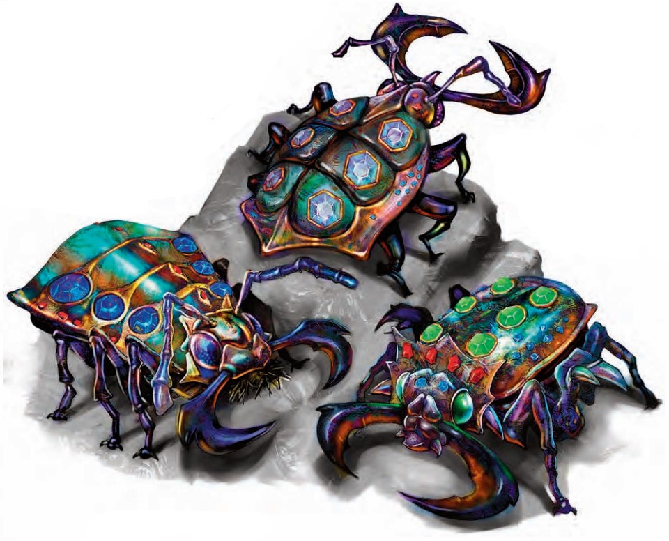 宝石甲虫背上长有宝石,这些宝石允许它们发动魔法攻击。如果从一只被杀死的甲虫身上取下来,这些宝石能卖很高的价格。 |