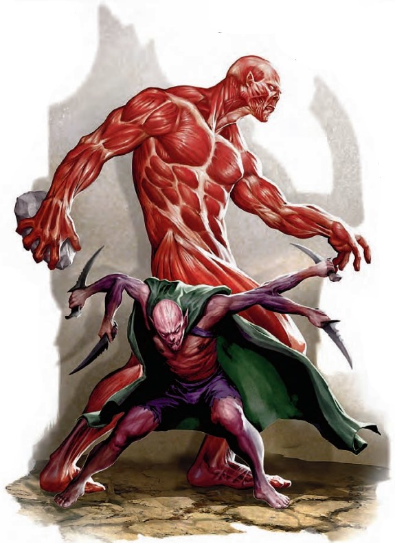 图勒魔可能很野蛮,但它们有本能的狡诈。其中一部分拿着岩石和棍棒,在战斗之前用这些东西攻击自己来获得苦痛力量的加成。苦痛力量的好处超过了受伤的不利。图勒魔通常太胆小,不敢伤害自己,只有紧迫的威胁会让它们做出这种事。