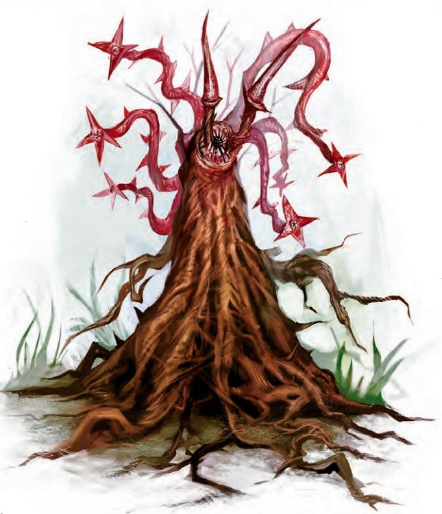 恶魔荆棘曼德拉是生长在下层界的污秽植物。它们常常被带到物质位面作为守卫或是制造一些麻烦。