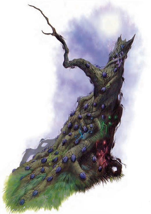 巨大的粗糙树干耸立在你的面前,大批的昆虫环绕着它的身躯。当这棵高大的树木向你移动而来时,多彩的能量弧光在它身旁的小生物身边环绕。