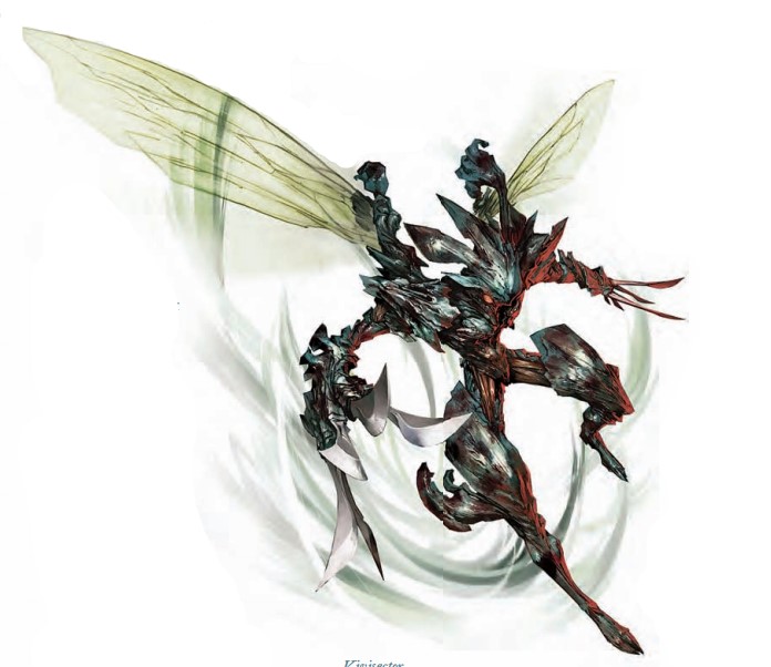 典型身体特征:一个正常的解剖者身高约5英尺,重100磅。它的身体像一只巨大的螳螂,每只手臂的末端都有爪子和一对黑色半透明的翅膀。