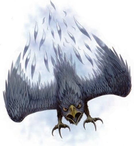 铁翼可以射出它锋锐的羽毛,像利箭一般进行远程攻击。或是射出锥形的羽毛造成毁灭性的伤害。它们非常喜欢从空中发起进攻,不管是喙,翅膀还是爪子都是它的武器。 |