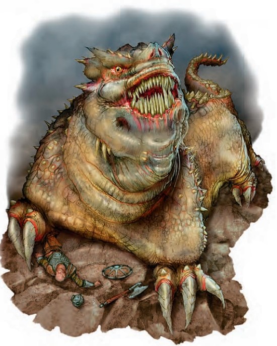 在你面前的地面上,钻出一只庞大的巨兽。它用后肢站起,在你面前摇摆着两只前爪,嘴里的牙齿咬得咯咯作响。