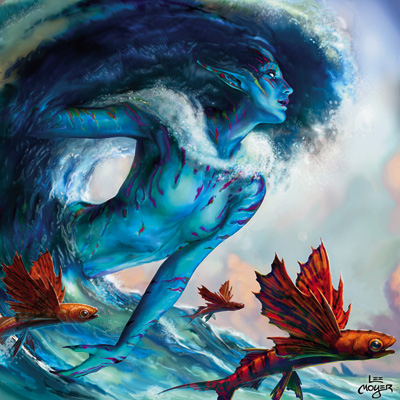 海中仙女经常伴着海洋生物和水元素一同出现。她们用听起来像是柔和的海浪嘘声的声音说水族语。