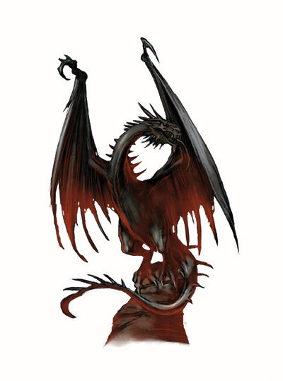 深渊龙兽类似于它们的翼龙祖先,但它们暗红色的有鳞外皮出卖了它们的炼狱血统。它们拥有强壮的蝠翼、蛇形的脖子和剃刀般锋利的爪子。