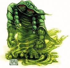 一股像是掘开坟墓一样的气味预示着这个笨重生物的到来。它的身体被不祥的黑色衣物包裹,它戴着一条足够遮住两个头的漆黑的头巾。