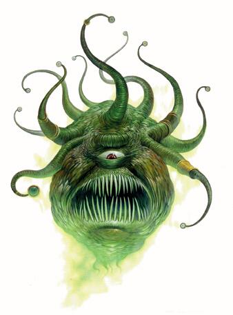 眼球射线 Eye Rays(超自然):每轮以一个即时动作,眼魔的10只小眼都能放射出一条魔法射线。在同一轮里,眼魔只能向任意90度范围内的目标瞄准最多3道眼球射线。每道眼球射线都类似于同名法术,施法者等级13,射程150英尺,豁免DC30。详见怪物图鉴。