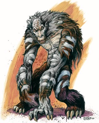 l天生武器:一个加尔贡野人有两次爪抓,每个有1d6伤害。持有武器的加尔贡野人常常用武器作为主要攻击,一次爪抓作为次要天武攻击(如果能空出第二只手做出这次攻击)