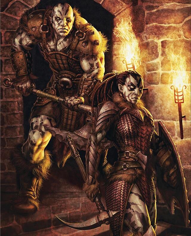 歌利亚是巨大的生物,他们从不畏惧投身于战斗之中。这些强壮的游牧人在任何冒险组合中都是有力的同伴并且极富竞争性。
