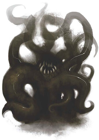 从幽暗的小巷中伸出一条触手,这方空间对它来说有些狭窄,紧接着是第二条,第三条。随后整个树干般粗壮的主体显现出来,它完全由触手组成,墨汁一样的身体在黑暗中几乎隐形。