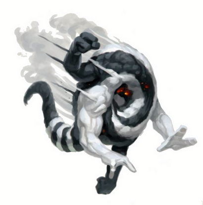 晦明之躯(Su):一个光暗御衡者的躯体是否具有实体取决于它周遭环境的照明程度,在低光或黑暗(以及超自然黑暗)环境中,它变得虚无缥缈,获得虚体子类。处于虚体状态下时,它失去力量属性,无法使用天生武器攻击,也失去天生防御加值(AC 降至16)。