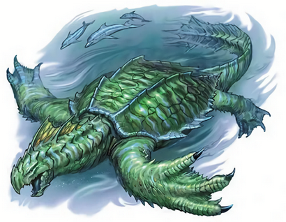 这种长尾的水兽看起来像一只巨大的海龟,并且带有龙类的特征。