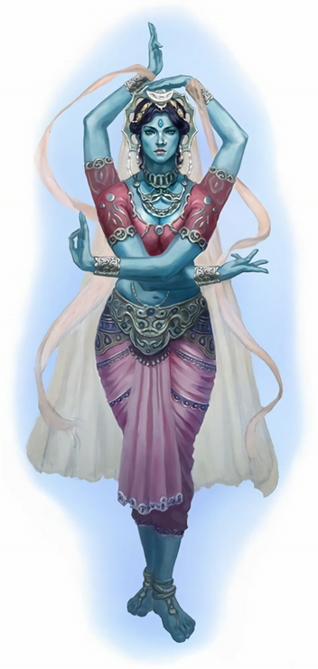 蔚蓝色的光芒灵活地颤动着,环绕着这个宏伟的四臂人像。