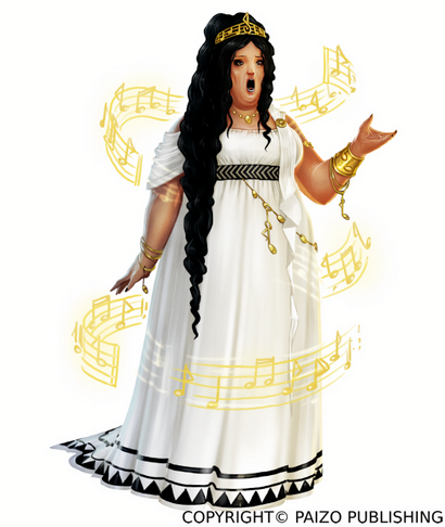 缪斯守护 Muse's Ward(Su):缪斯将守护的音乐融入她的珠宝和衣服中,这为她(但不能是其他人)提供+4的护甲 AC 加值,并且允许她将魅力调整值的一半加在她的体质调整上来计算生命值。这些音符还可以作为所有表演的精致乐器。