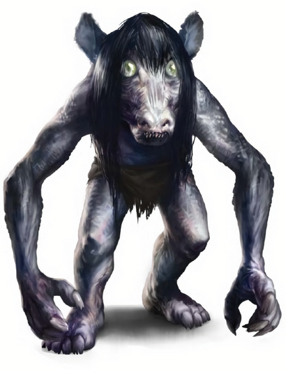 Malicious and furtive,boggarts are believed to be brownies(Pathfinder RPG Bestiary 2 49)that were mistreated or somehow corrupted. Unlike brownies,who sometimes form mutually beneficial relationships with particular families and take up residence within those families' houses,boggarts rarely occupy homes. Instead,they lurk in swamps,in marshes,and on riverbanks,favoring areas where people have vanished or drowned. A boggart's relationship with nearby households and homesteads is almost always disruptive. It frightens livestock and breaks valuable objects,and even goes so far as to follow victims who move their households in an attempt to escape their tormentor. Despite these habits,boggarts rarely cause serious harm to their chosen families,preferring simply to sow fear and misery. Even though these relationships are characterized by animosity,they seem to stabilize the boggarts somewhat. Boggarts that lack households to terrorize are far less benign.
