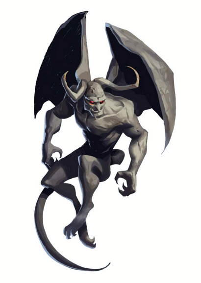 石像鬼看上去像有翼的塑像。因为他们能无限地静立下去,所以往往能打对手个措手不及。石像鬼经常有着古怪的执念,其多样性就和自身的种类一样千奇百怪。书,小玩意儿,武器和从敌人尸体上割下的病态战利品是石像鬼藏品中比较常见的几种。石像鬼独往独来,但也有时会集结成称为"编队"的集群来自保。在某些情形下一个石像鬼部落甚至会和其他生物联盟,但其中最稳固的关系也可能因为一些微不足道的原因崩溃——石像鬼可是背信弃义,卑鄙和护短的楷模。石像鬼可能居住在最大的城市中心,白天伪装成大教堂上蹲伏的塑像,晚上则攫取流浪汉,乞丐和其他倒霉蛋为食。