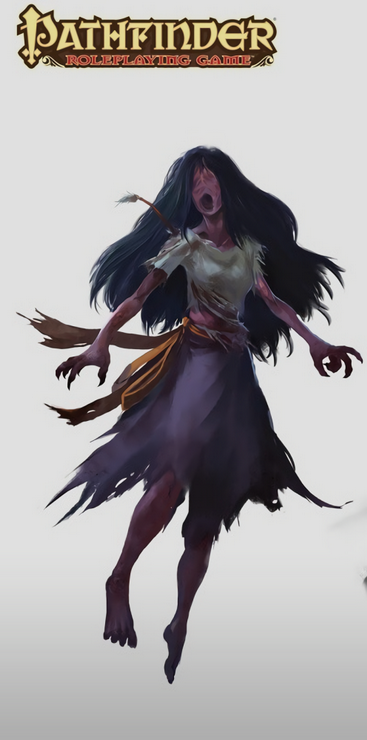 Dressed in filthy rags,this undead woman lacks any facial features. Ragged talons grow from her dirty fingers.