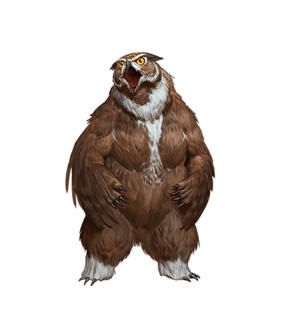 一团皮毛与羽毛的混合物,这古怪的半熊半枭的怪物在愤怒中举起了自己的熊掌。