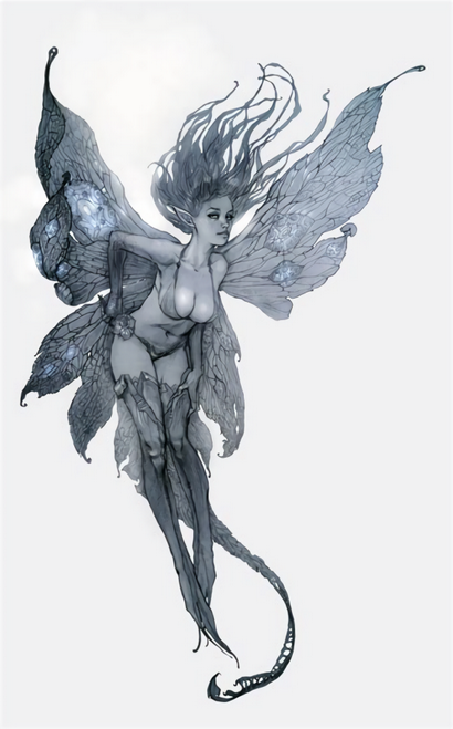 这个小小的长相古怪的类人生物挥舞着色彩缤纷的纱翅,敏捷地飞来飞去。