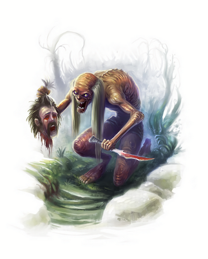 这个可憎的类人怪物身上绷着一层韧皮。它身体憔悴而眼窝深陷,不过动作却是惊人的敏捷。