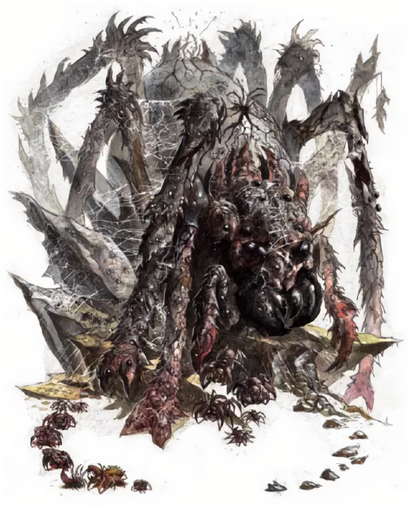 死亡之网是一副用秽邪的死灵法术将巨大蜘蛛唤起而产生的不死骸骨。创造这头巨兽的法术将其与数以千计的普通蜘蛛绑定,它们共同形成的不死怪兽宛如具有精神的蜘蛛巢穴一般。这些小蜘蛛生活在这骨骼家园内,在死亡之网的身上相互协作并编制出它的巨网。