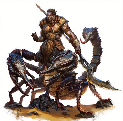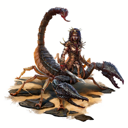 半蝎人勇猛的守卫着远古的场所和被历史遗忘的秘宝。远离文明社会的视线,他们兴盛发展,虔诚的和他们的宠物巨蝎一起行使自己的职责。