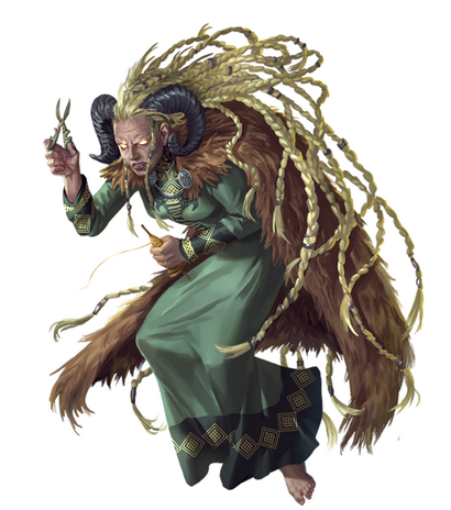 难以想象的古老,织命女是一个强大的女性种族,将命运以金丝的具现形式掌握在手。她们监管着一切生灵,被召唤时不情愿的出手,在命运之线被下等生物扰乱和滥用时复仇。她们被一些人当成神灵崇拜,而织命女对这种圣化不置可否。