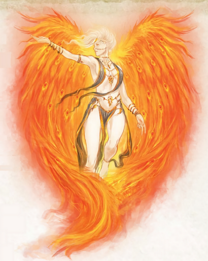 这美丽的纯白女子有着耀眼的火焰之翼。