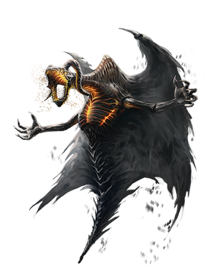 包裹在黑暗之翼中,这骷髅般的可怕生物像是在从内而外的燃烧着。