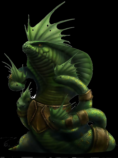 这里展示的神圣守护者多头蛇是用 B1的多头蛇创建的。关于此生物的特性和能力规则,参见对应条目。这种神圣守护者是自然与天气之神的神圣守护者,因此具有气系和水系子类。