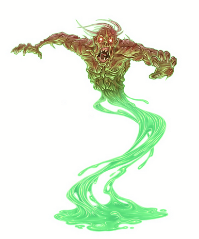 比其他不死生物更甚,由灵质所生的生物是可憎的存在,体内仅存毁灭和折磨的欲望。它们没有生理需求,也不需要食物维系;灵质生物唯一渴求的是它对生者的仇恨。