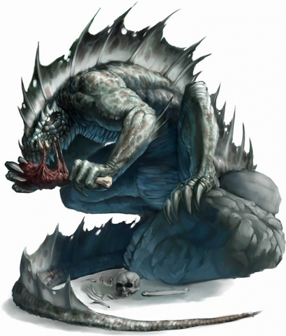 啃食(Feed,Su):通过花费整轮动作吞噬一个已死或昏迷的生物,战蜥兽会获得1d8 + 9点暂时生命值,并且攻击和伤害检定获得+2加值,持续1分钟。该暂时生命值的加值基于体质。