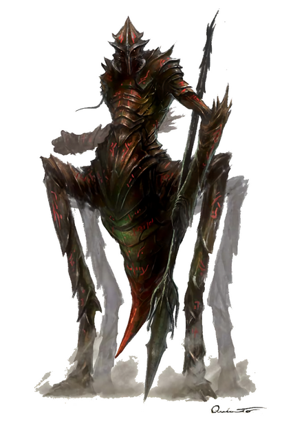 这个蚁族战士从头到脚都包裹着闪耀得红黑色几丁质甲壳, 其尾部末端有根凶残得毒刺。
