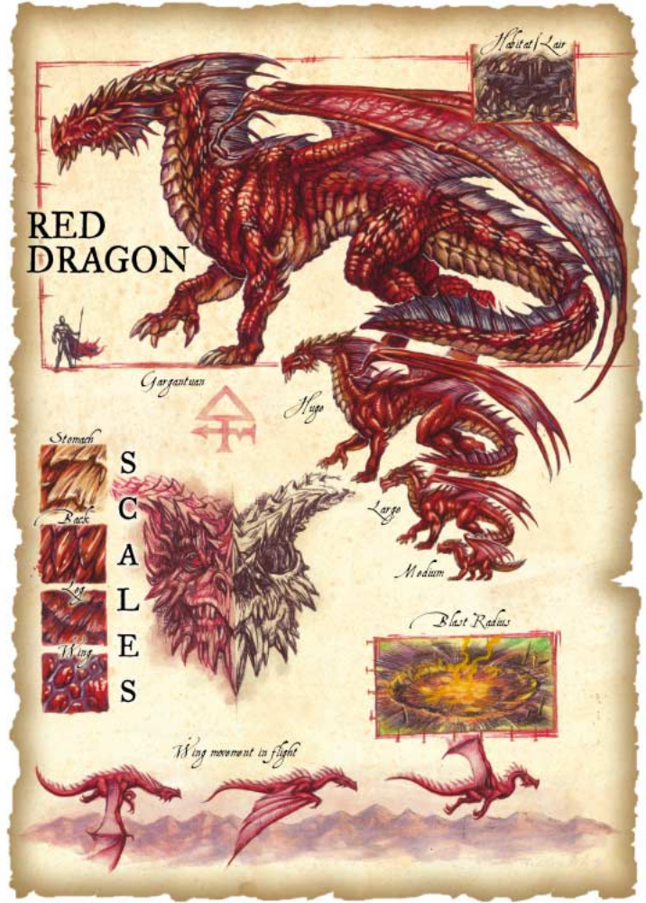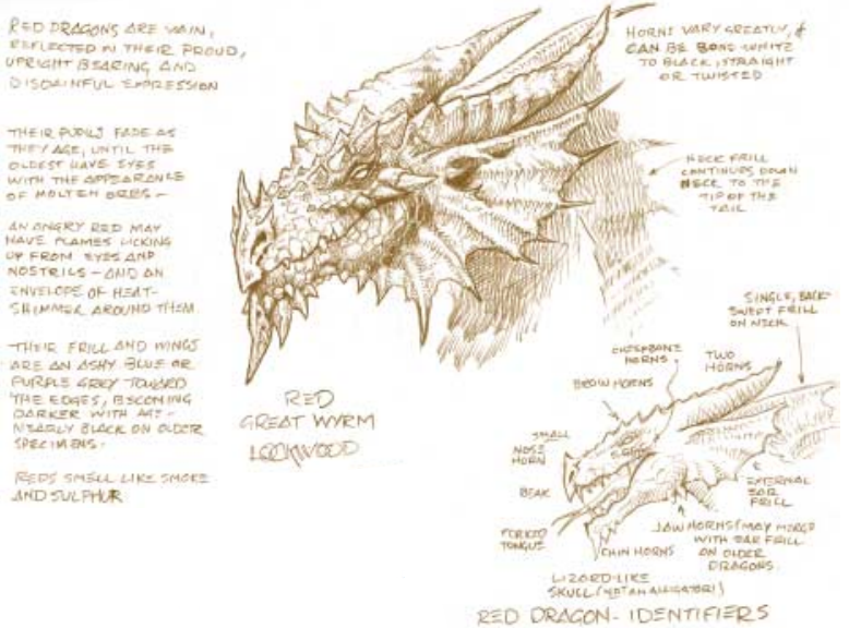 红龙是所有真龙中最贪婪的,它们不倦地寻求增长它们的宝库。即使按龙的标准,它们也是特别自负的,这反映在它们骄傲的举止和倨傲的表情中。