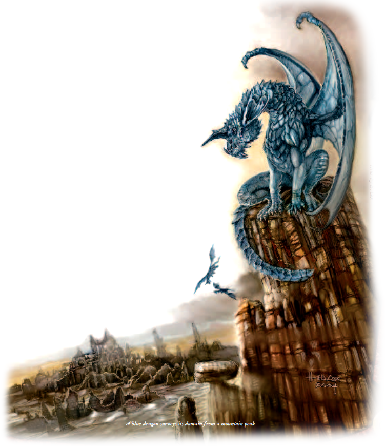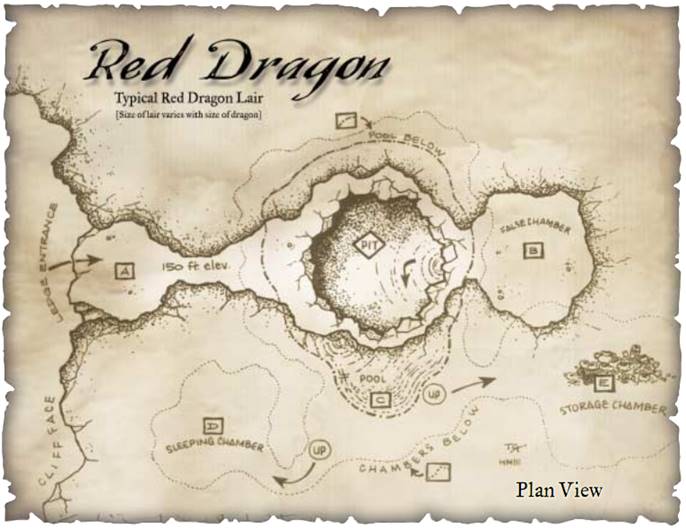 群山之主 Mountain Masters:红龙喜爱山地地形,但也住在丘陵地区、崎岖地区和它们能够栖息在高处并俯瞰它们的领地的其它地方。红龙对山区的家的偏爱常常使它们与它们强烈痛恨的银龙发生冲突。银龙常常在战斗中胜过红龙,这仅仅有助于煽起红龙心中的愤恨之火。红龙也不时与赤铜龙争夺领地,较弱的赤铜龙常常为了在任何直接对抗中生存下来而倍感压力。红龙寻找延伸到地下深处的大洞穴作为其巢穴。有一定火山或地热活动的洞穴受到最高的重视。然而,无论其巢穴是什么样的,附近总是有高的栖息处,龙从那里傲慢地俯瞰其领地。住在地下城的红龙寻找过热或易燃的地区作为它们的巢穴。因为地下城通常缺少提供对附近地区的全景视野的高地,住在这样的地方的红龙往往满足于有提供广阔视野的长走廊的空地或地区。