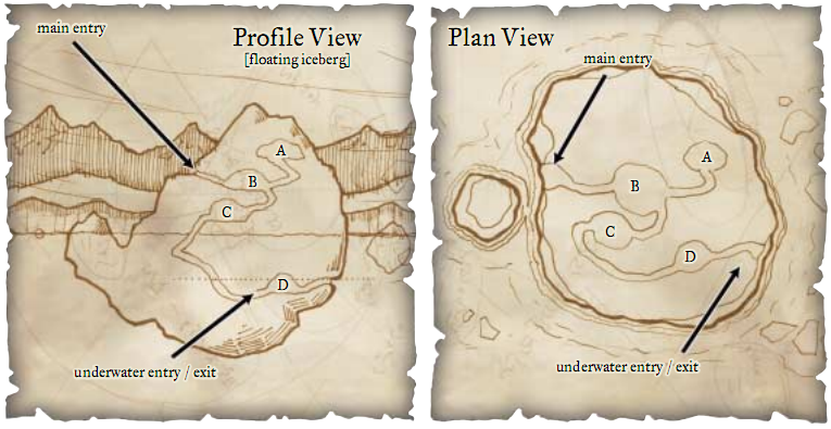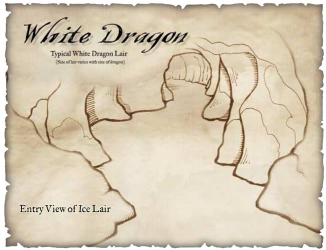白龙巢穴中遍布着散落的钱币与宝石,并在光线的照耀下如群星般闪闪发光。大型的宝藏和宝箱则覆盖着白龙呼出的白霜,并安全的保存在透明冰层之下。龙的强大力量使得它能够轻松的接近自己的财宝,而低等生物则必须花费数小时--点点的敲碎或融化坚冰,才能触及宝库的主体。
