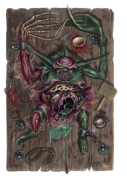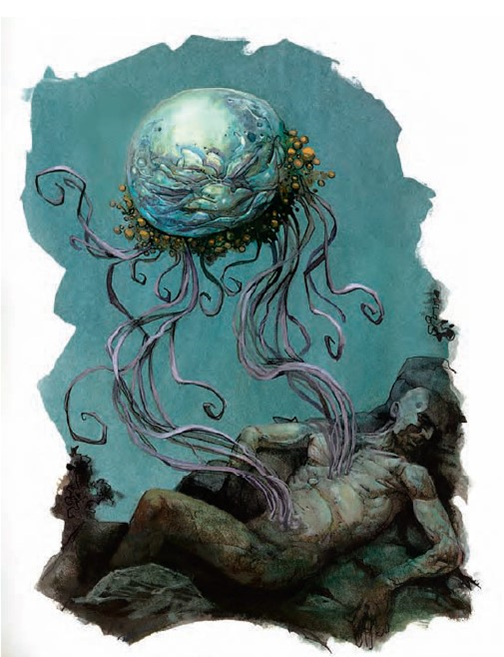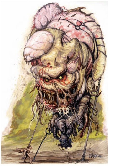 一团无定形的泥状怪物,看起来就像一个不断融化,7英尺高的蜡烛,身体中镶嵌着一颗血红色的眼珠。八条鞭子般的触手在它身边扭动,就像一团劈啪作响的狂怒风暴。