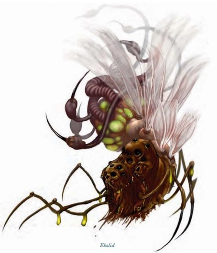 蜡融妖是变形的大师,能够在4种形态下随意变化:有害的绿色云状气体,人形蜘蛛,美丽的女性精灵或人类,或有一只红眼的无定形的触手怪。 |