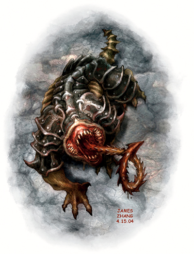 尽管外表显得巨大而有力,这只双翼绿色的生物依然充满了速度感和灵活感。如同狗一样形状的头迅速地转来转去,就像一只鸟。指尖那强有力的爪看起来除了那身坚固的铠甲之外,没有更匹配的了。