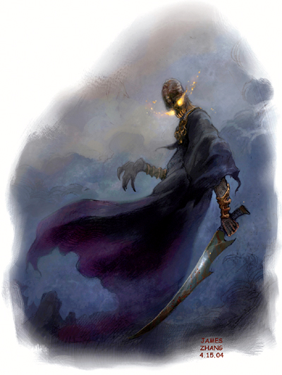 类法术能力:随意施展——深邃黑暗术、亵渎术、恐惧术(DC18)、隐形、镜像术、识破隐形、高等传送术(只能自身外加50磅的物品)。