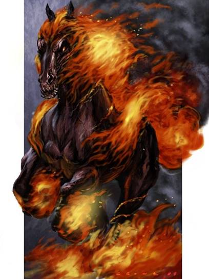 喂养地狱犬时,它们吞噬的血肉成为体内炼狱之火的燃料。地狱犬死去时,这些火焰便会反过来吞没这只生物的残骸,然后在滚滚浓烟和熊熊燃烧的灰烬中烧到只剩焦黑的皮毛。