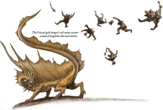 巨龙之书中描述的两个专长能够强化龙的尾扫。旋风尾扫专长允许龙影响一个圆形而非半圆形的区域,而尾扫击倒能击倒任何豁免检定失败的角色。