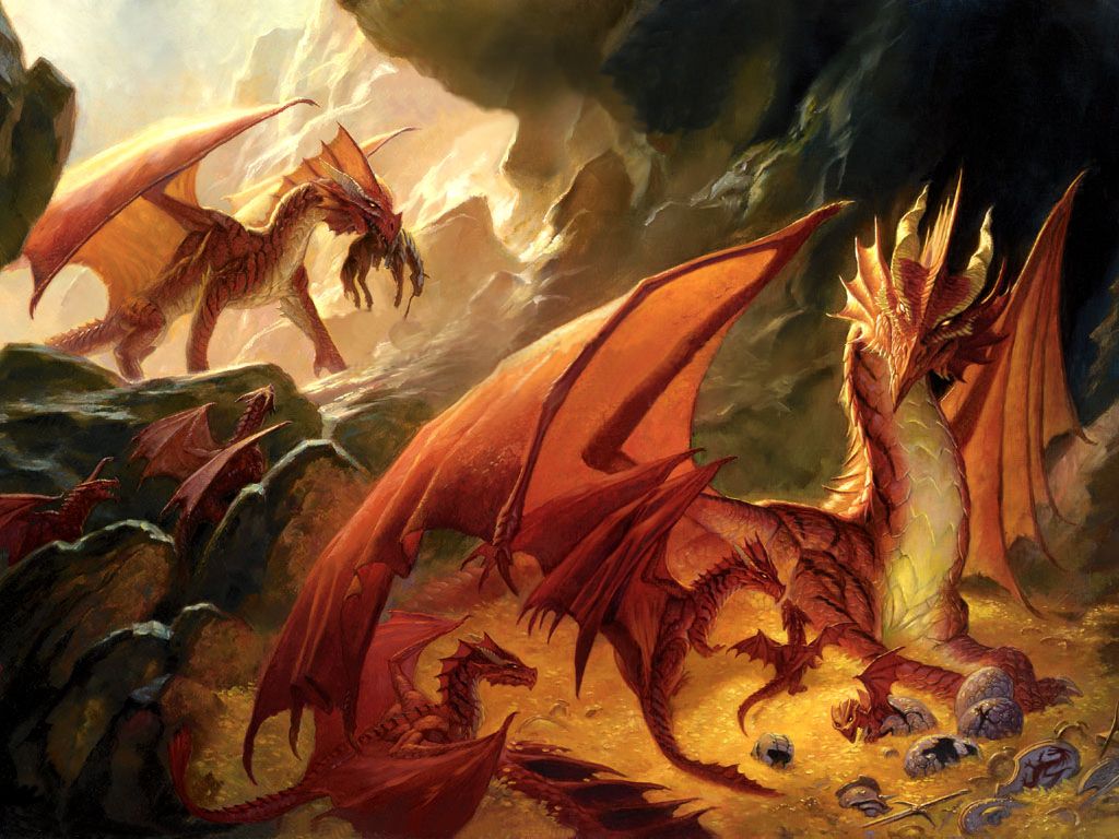 虽然龙的目标及想法会因种类而有极大差异,但它们都十分贪婪。它们喜欢收藏财宝,收集成堆的钱币,并尽可能收集宝石、珠宝及魔法物品。那些拥有大批收藏品的龙不愿意离开这些宝藏太长时间,只有在巡视附近区域或找寻食物时才会离开巢穴。对于龙来说,财宝永远都不会足够。这些宝藏是如此赏心悦目,龙喜欢沉浸在宝藏的光辉之中。龙喜好用它们的宝藏作床铺,在上面弄出一个适合自己体型的隐蔽处。当龙成长到太古龙阶段时,它的皮肤上将会因此镶嵌上数百枚宝石。