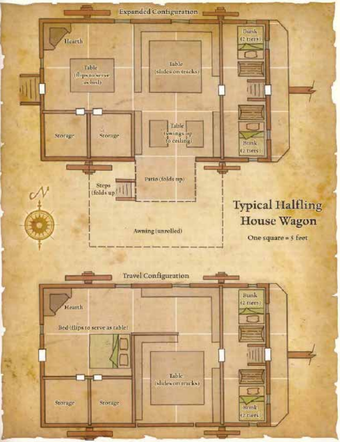 为报酬工作的半身人会小心对待他们获得的收入,首先供给他们的家庭,然后把剩下的战利品贮藏在马车内,知道他们可以将它隐藏在一个安全的地方——最好是一个值得信赖的定居半身人那里。